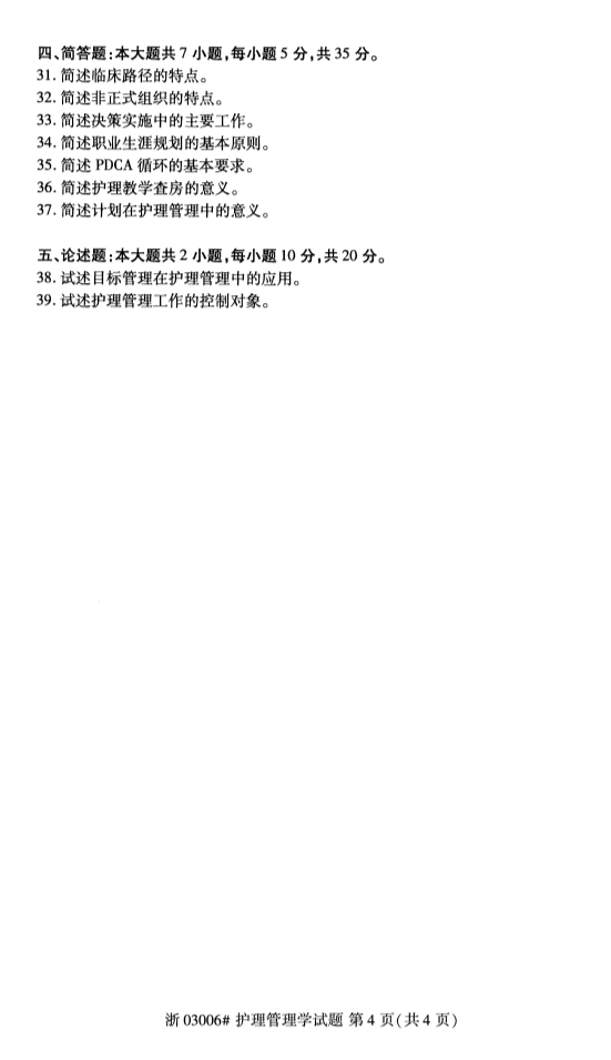 所在位置:廣東省自考網 > 試題題庫 > 自考試卷 > 全國2019年10月自考03006護理管理學試題