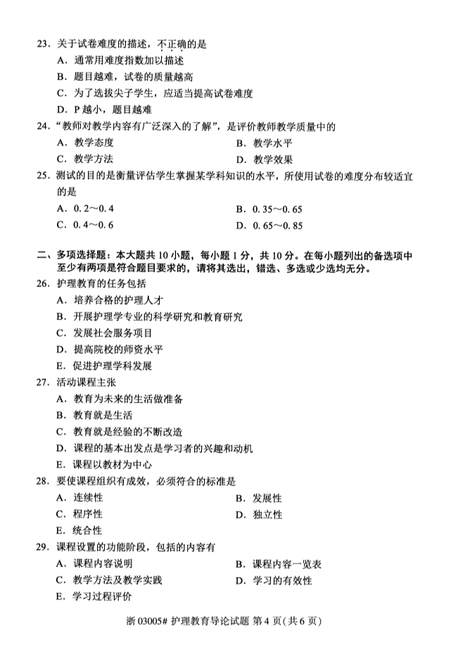 所在位置:廣東省自考網 > 試題題庫 > 自考試卷 > 全國2019年10月自考03005護理教育導論試題
