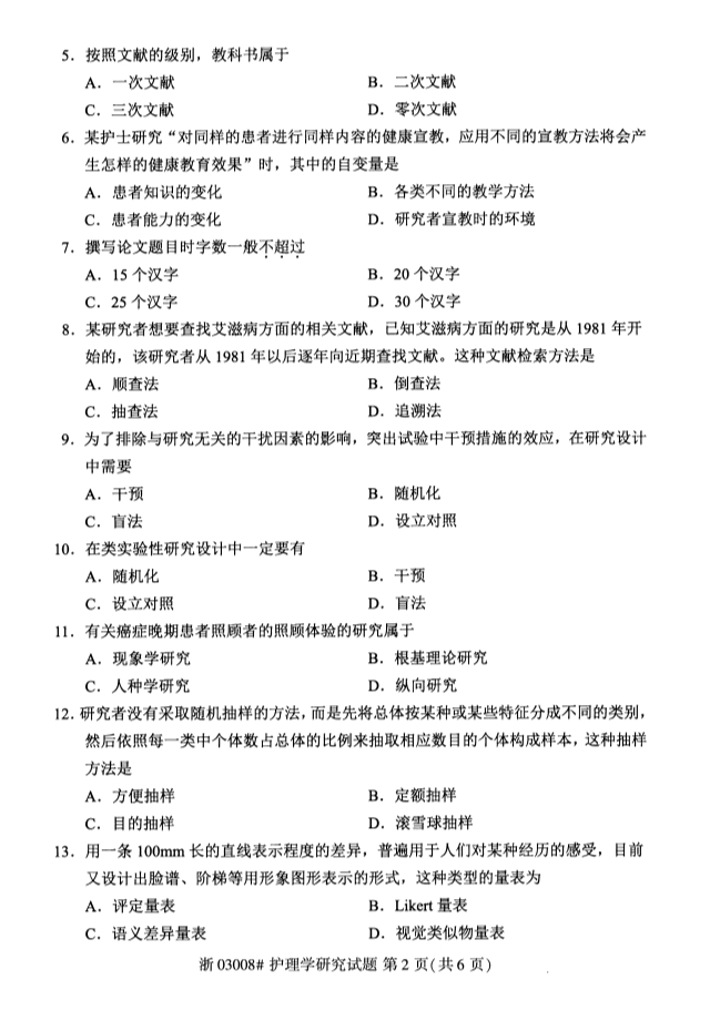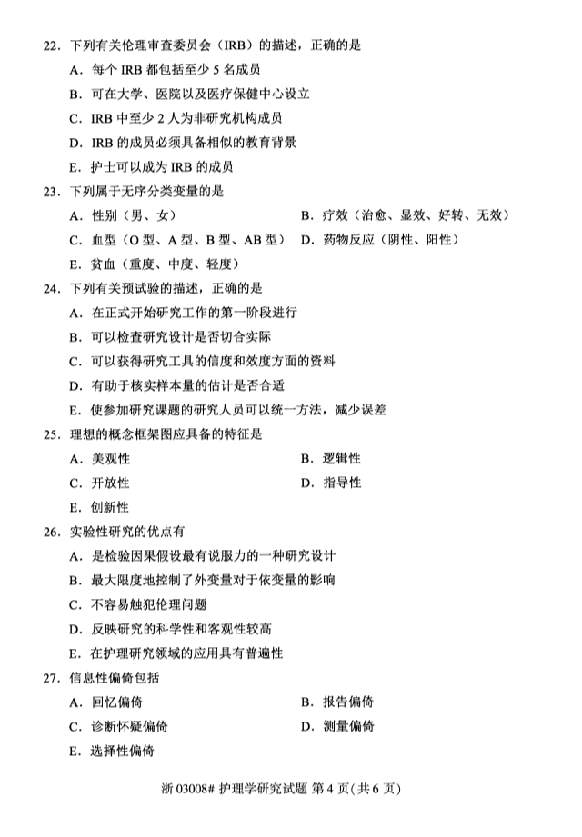 所在位置:廣東省自考網 > 試題題庫 > 自考試卷 > 全國2019年10月自考03008護理學研究試題