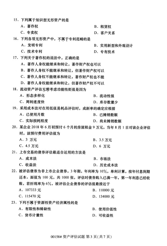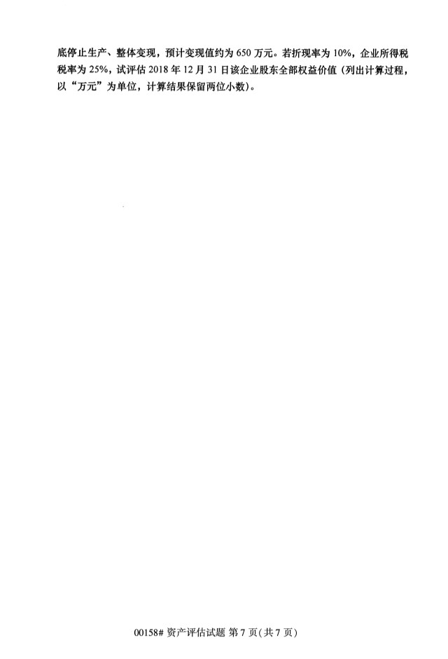 所在位置:廣東省自考網 > 試題題庫 > 自考試卷 > 全國2019年10月自考00158資產評估試題