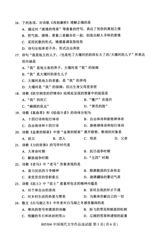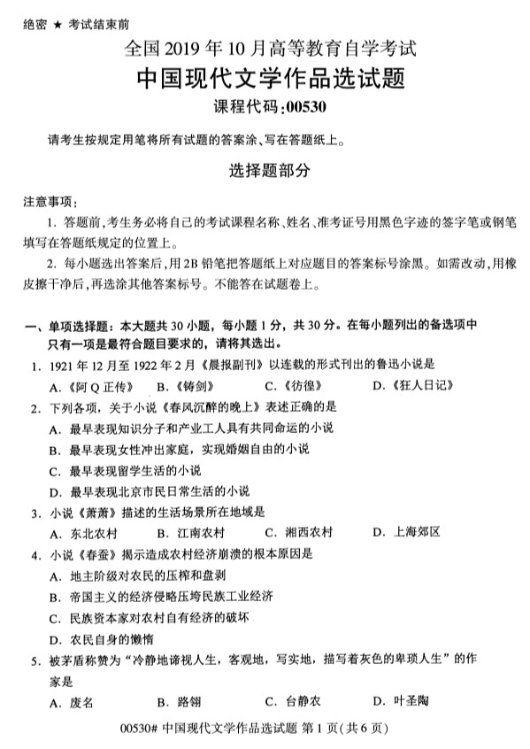 所在位置:廣東省自考網 > 試題題庫 > 自考試卷 > 全國2019年10月自考00530中國現代文學作品選試題