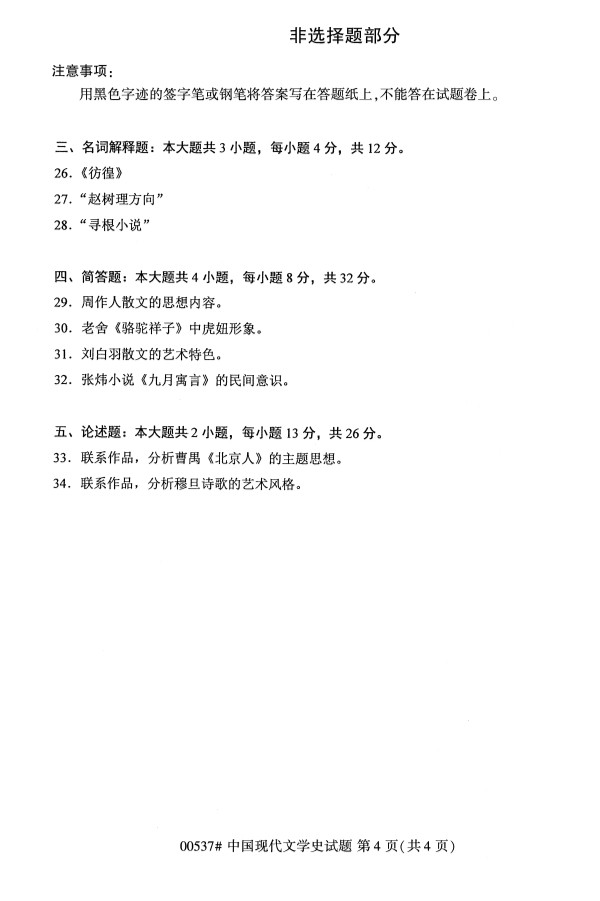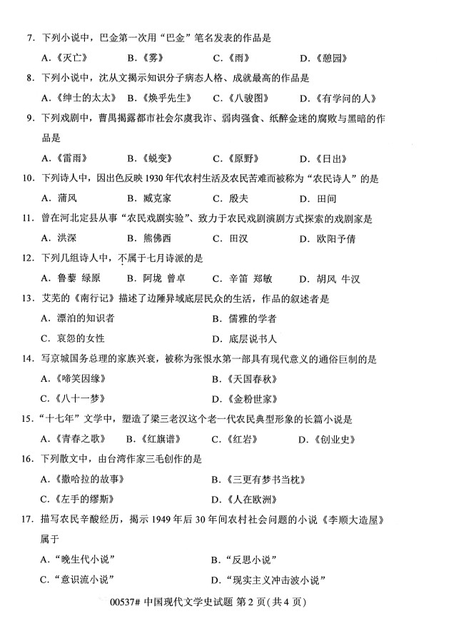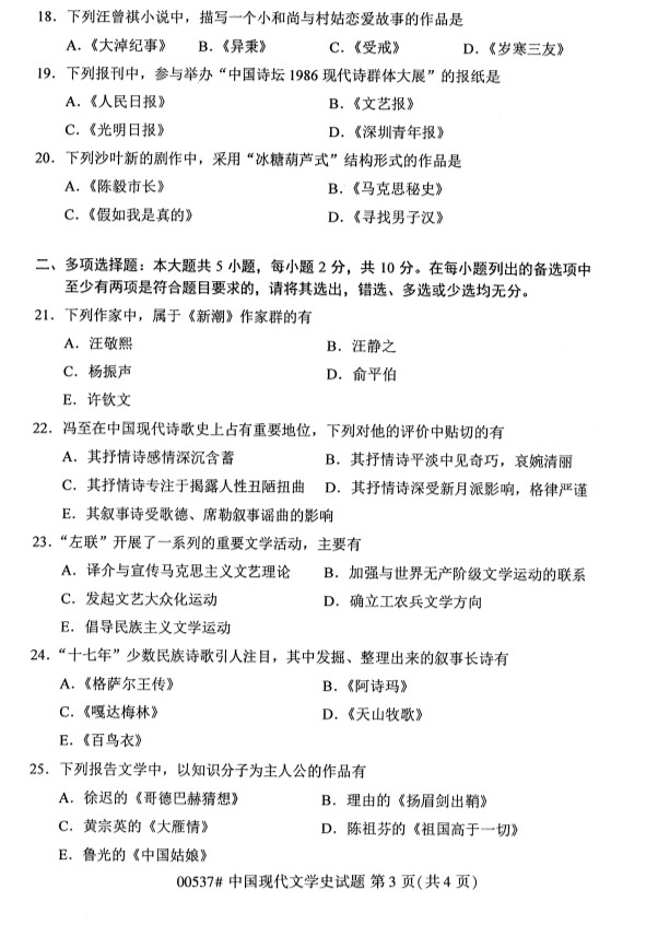所在位置:廣東省自考網 > 試題題庫 > 自考試卷 > 全國2019年10月自考00537中國現代文學史試題