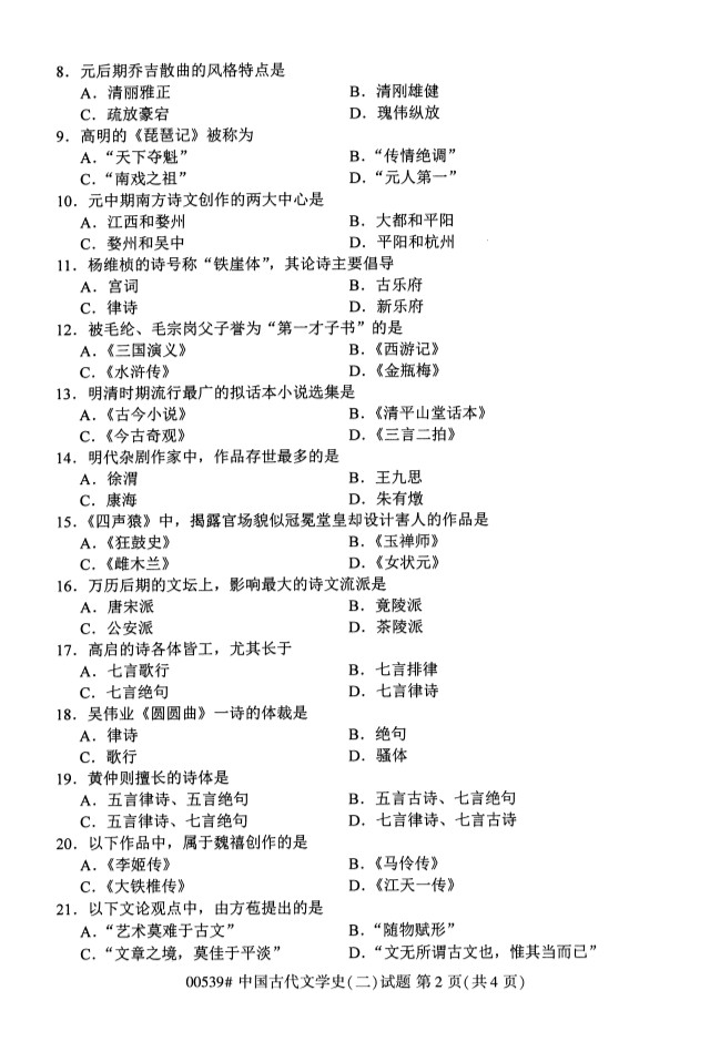 所在位置:廣東省自考網(wǎng) > 試題題庫(kù) > 自考試卷 > 全國(guó)2019年10月自考00539中國(guó)古代文學(xué)史(二)試題