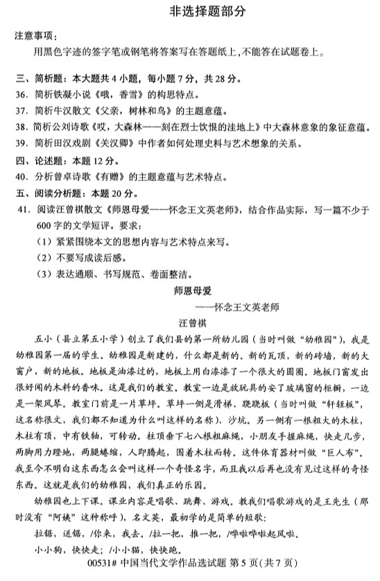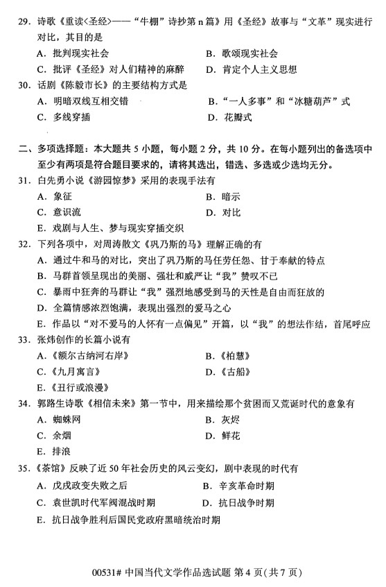 所在位置:廣東省自考網 > 試題題庫 > 自考試卷 > 全國2019年10月自考00531中國當代文學作品選試題