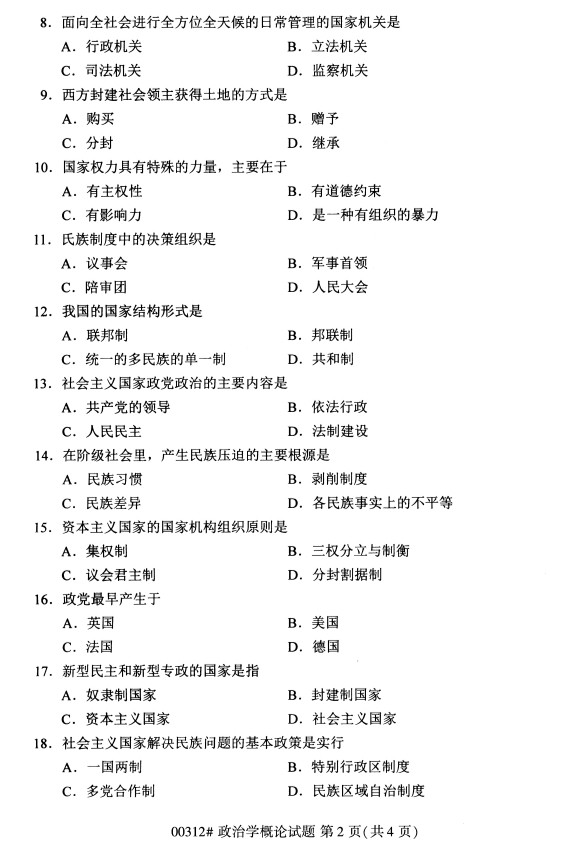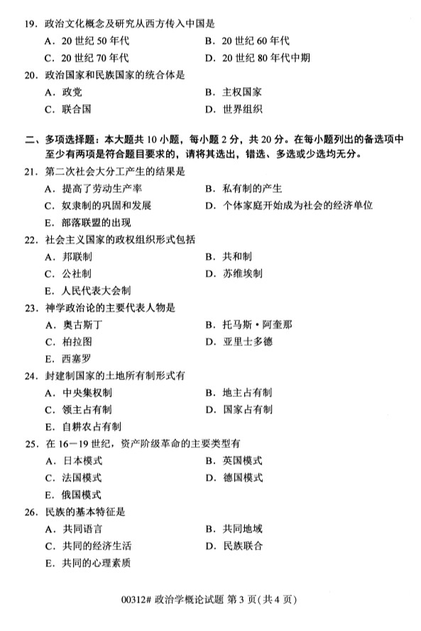 所在位置:廣東省自考網 > 試題題庫 > 自考試卷 > 全國2019年10月自考00312政治學概論試題