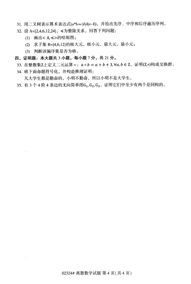 所在位置:廣東省自考網 > 試題題庫 > 自考試卷 > 全國2019年10月自考02324離散數學試題