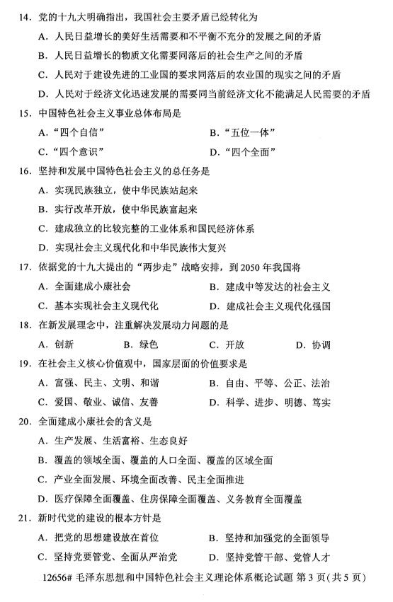 所在位置:廣東省自考網 > 試題題庫 > 自考試卷 > 全國2019年10月自考12656毛澤東思想和中國特色社會主義理論體系概論試題