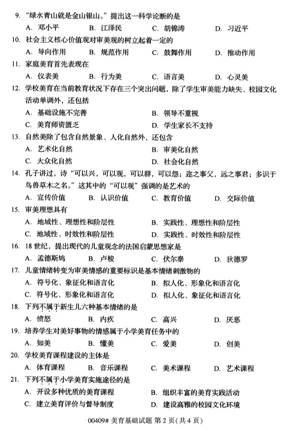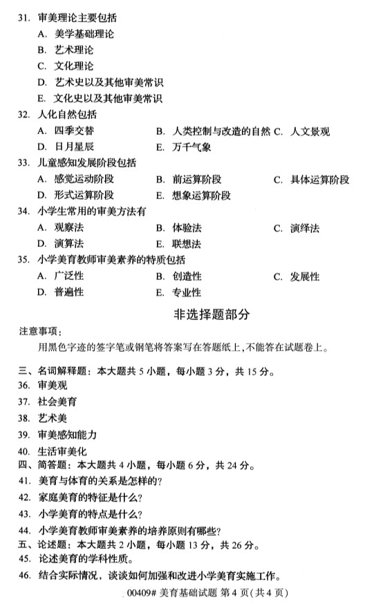 全國2019年10月自考00409美育基礎(chǔ)試題