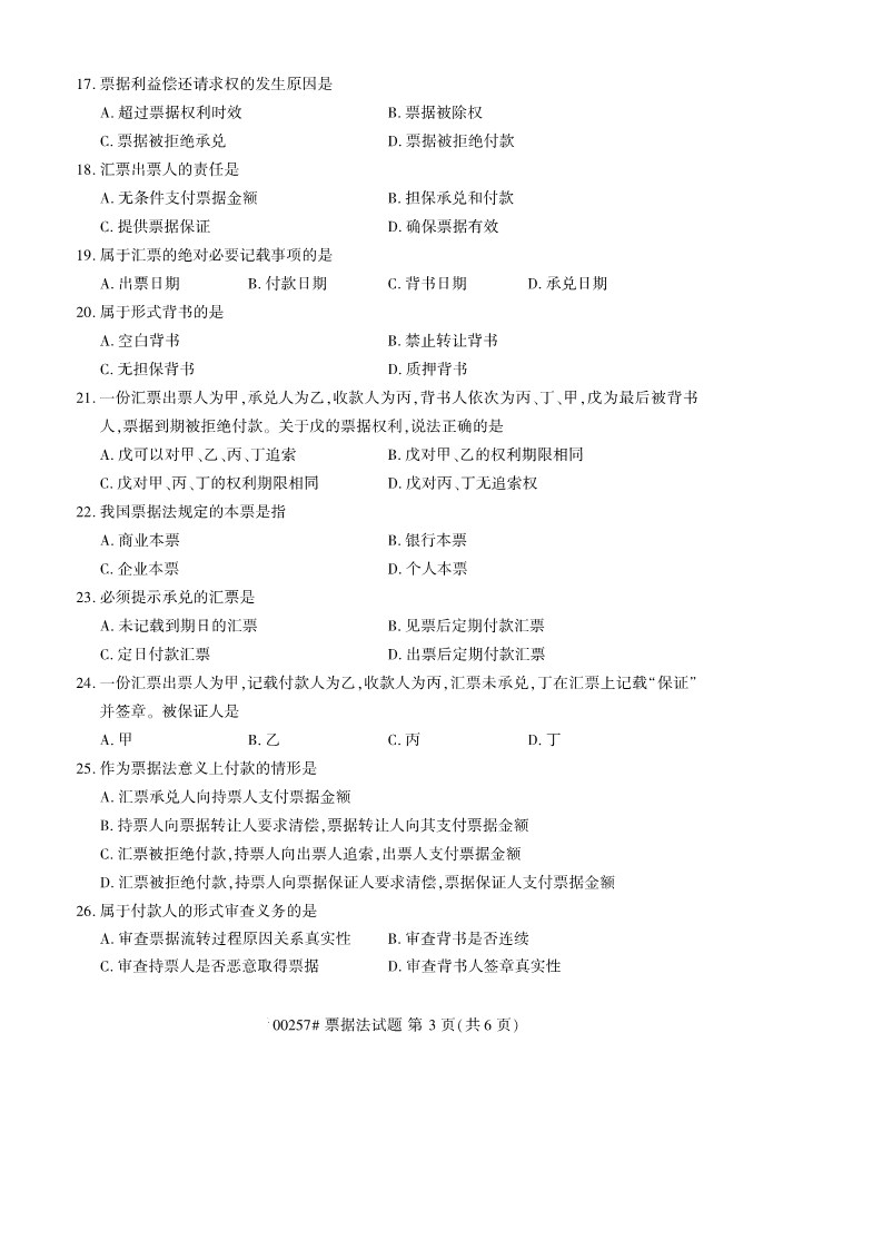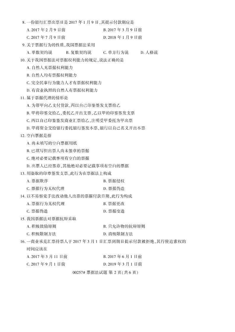 所在位置:廣東省自考網 > 試題題庫 > 自考試卷 > 全國2019年10月自考00257票據法試題