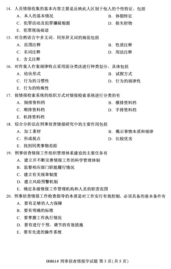 所在位置:廣東省自考網 > 試題題庫 > 自考試卷 > 全國2019年10月自考00861刑事偵查情報學試題