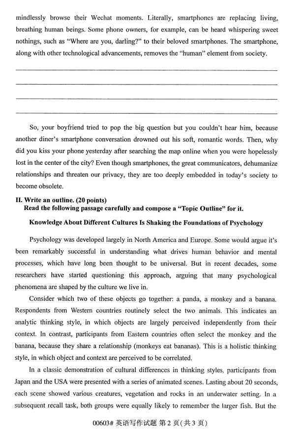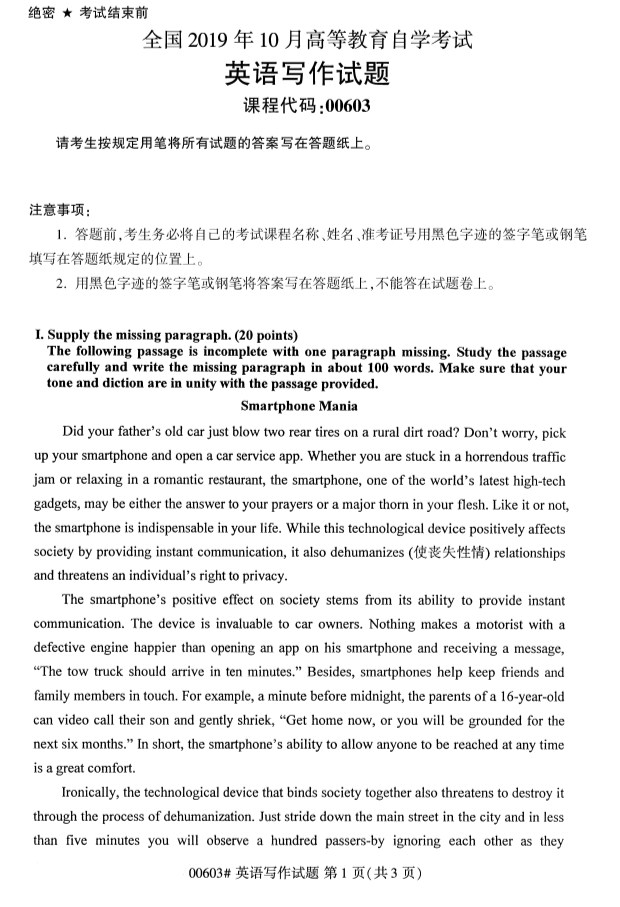 所在位置:廣東省自考網 > 試題題庫 > 自考試卷 > 全國2019年10月自考00603英語寫作試題