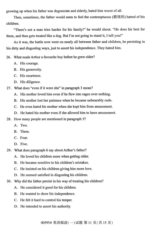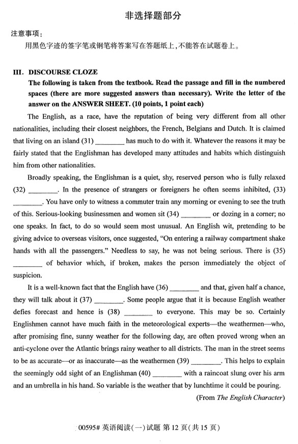 所在位置:廣東省自考網 > 試題題庫 > 自考試卷 > 全國2019年10月自考00595英語閱讀(一)試題